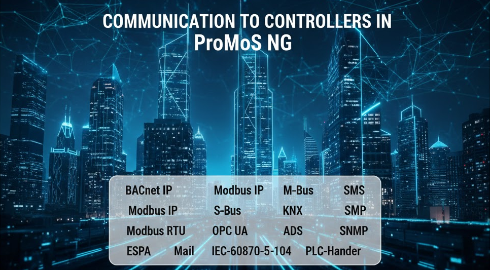 Folgende Kommunikationstreiber erweitern die Interoperabilität von ProMoS NG und ermöglichen eine umfassende Integration von verschiedenen Geräten und Systemen in unterschiedlichsten Anwendungen, von der Gebäudeautomation bis hin zu industriellen Steuerungssystemen.